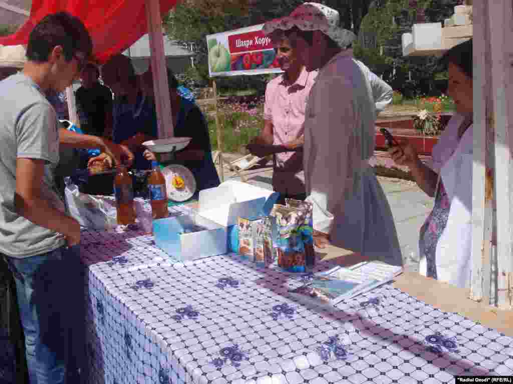 Дар майдони "Ваҳдат"-и шаҳри Хоруғ, ки тайи тақрибан ду моҳи ахир шоҳиди ҳамоишҳои эътирозии мардум буд, имрӯз, 28-уми август, мардуми зиёде дар намоиш ва фурӯши маҳсулоти кишоварии вилояти Бадахшон ҷамъ омадаанд.