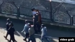 Саҳнаи бархӯрди милиса бо ин зан аз баландии сохтмоне наворбардорӣ шудааст. Дар ин навор дида мешавад, ки раҳгузарон корманди милисаро бо садои "ин зан бемории рӯҳӣ дорад", талош мекунанд аз амалаш боздоранд, вале зоҳиран асар намекунад.