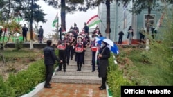 Дар акси дигар дида мешавад, ки Абдуҷаббор Раҳмонзода, ёвари раиси ҷумҳур дар умури робита бо ҷомеа, Хайриннисо Юсуфӣ, муовини раиси Ҳизби ҳокими халқии демократӣ, Қурбон Ҳакимзода, раиси вилояти Хатлон ва дигарон дар зери чатр истодаанд.